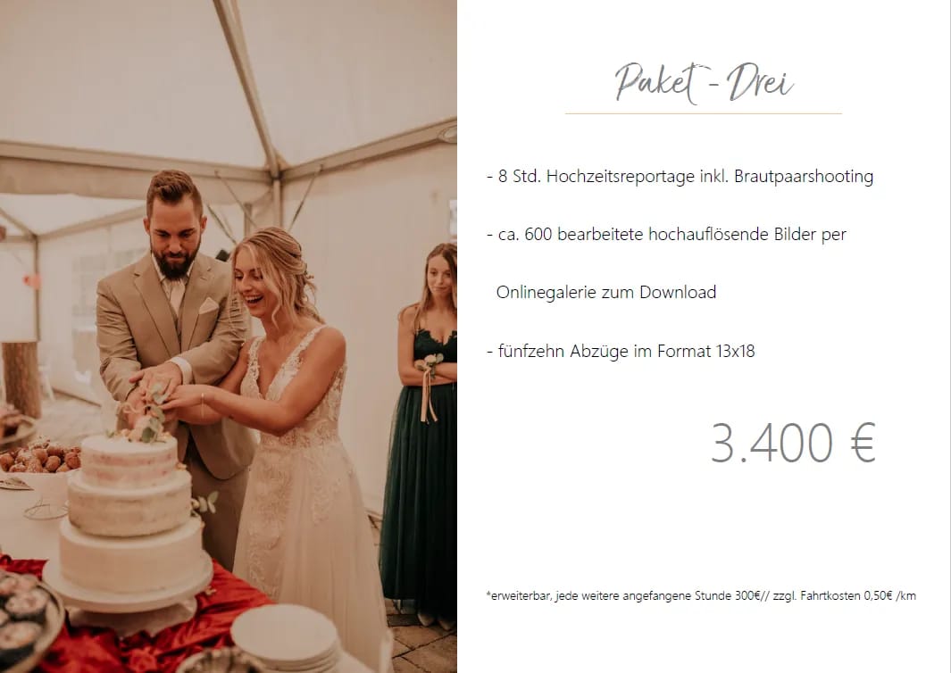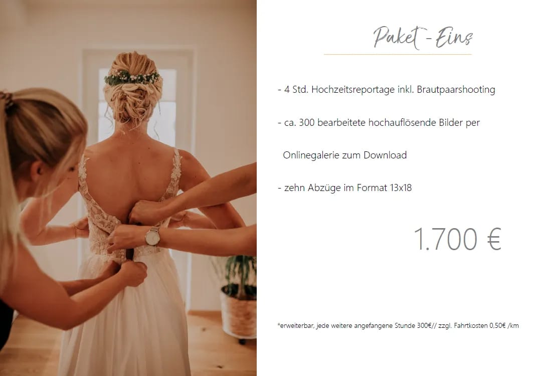Der Einzug ist ein intensiver und bedeutungsvoller Moment. Mit zwei Fotografen wird dieser wichtige Moment von zwei Perspektiven eingefangen, wie es alleine unmöglich ist. Beide Bilder sind am Ende unendlich wertvoll – und wir wollen auf keines der beiden verzichten!